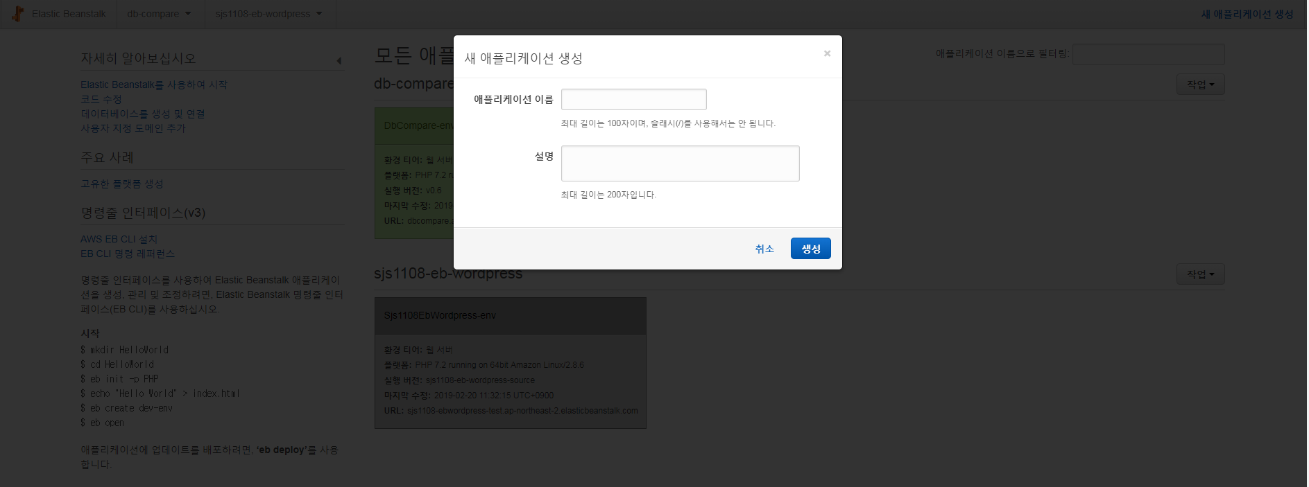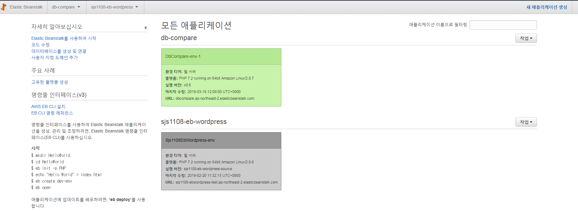 elastic beanstalk 서비스에 접속