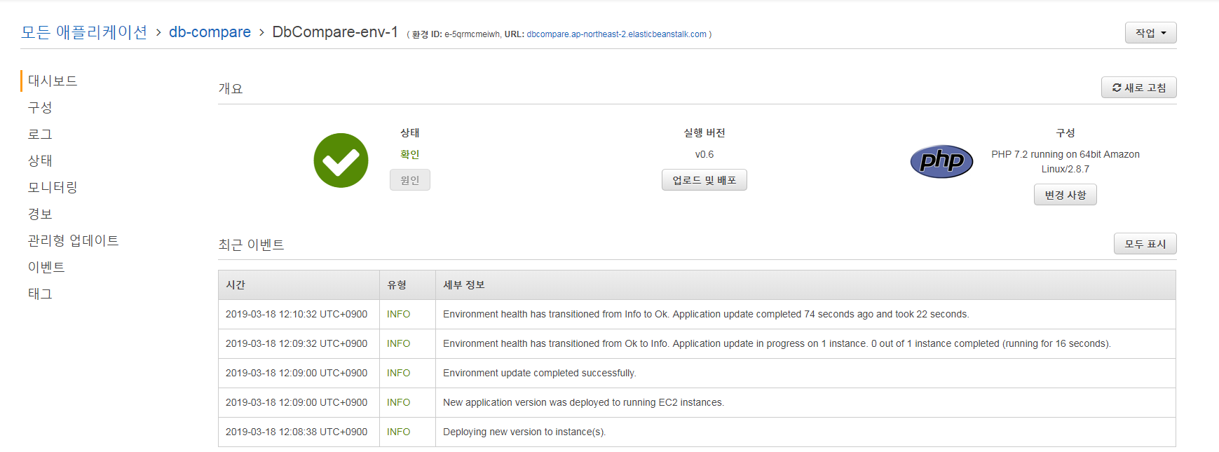 beanstalk url 접속 화면